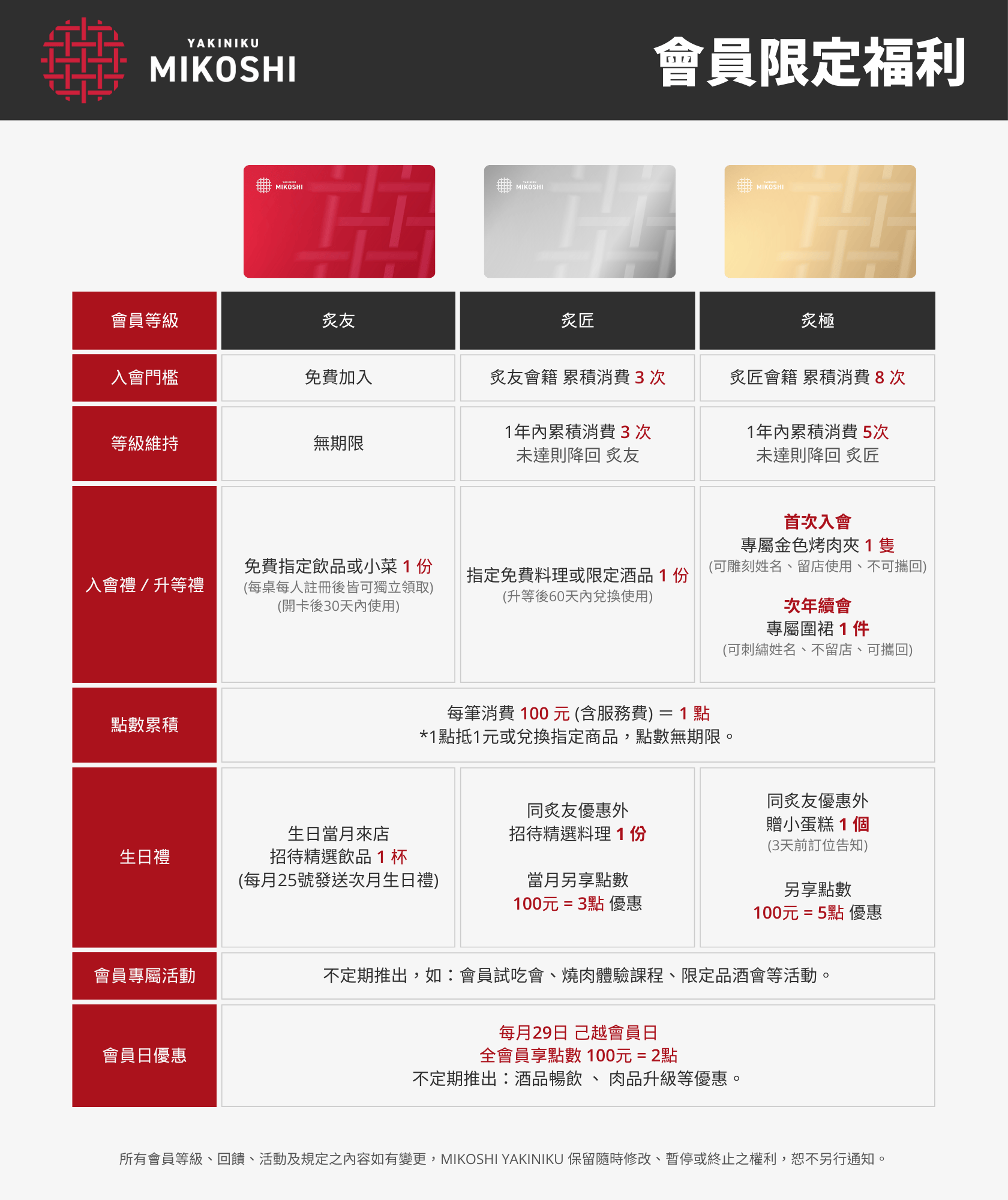 ✨ 晉升「炙匠」、「炙極」等級,獲得專屬烤肉夾與刻名圍裙等尊榮禮遇